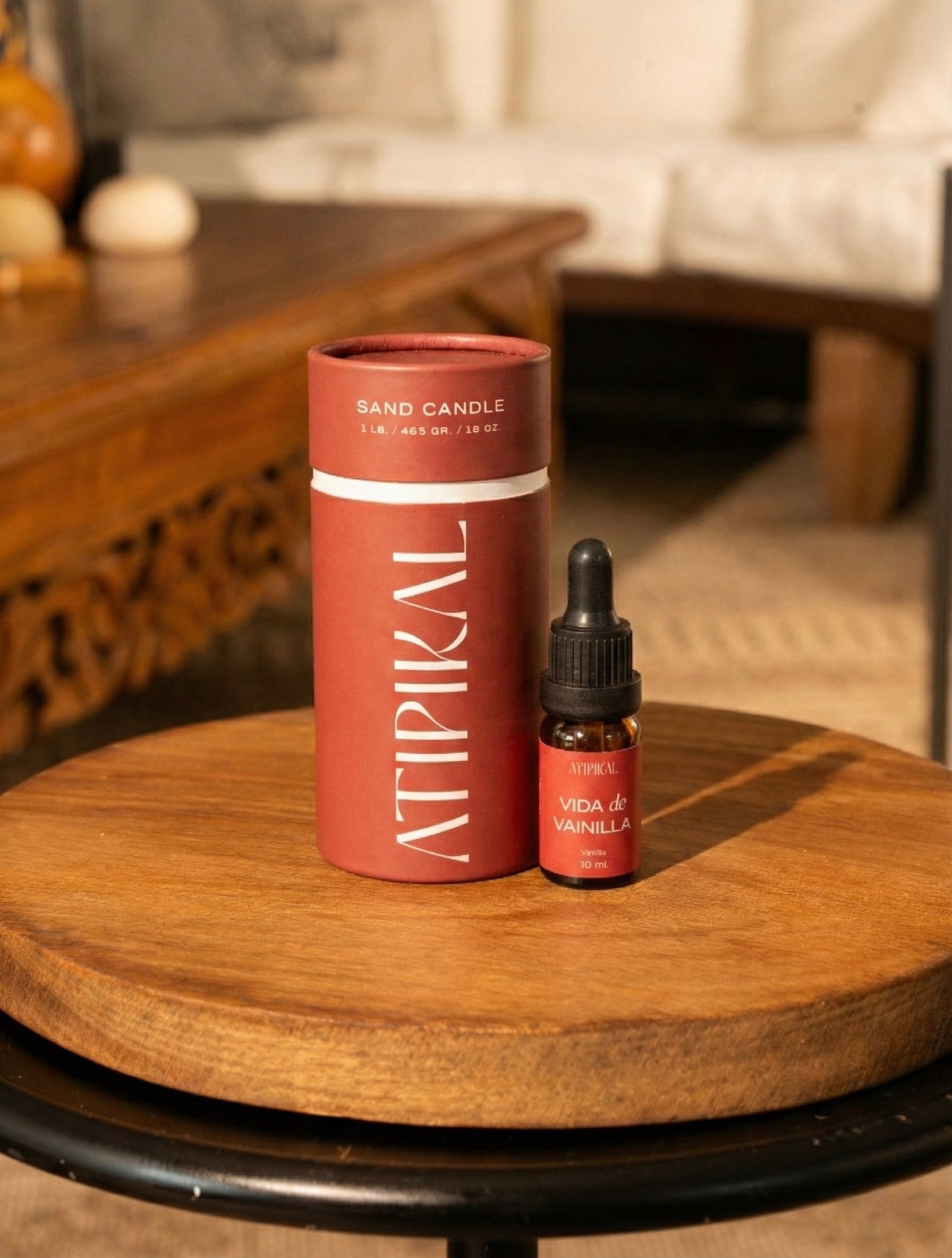 Incluye: una vela de arena ATIPIKAL, esencia a elección, cajita con 30 mechas para 30 momentos y cintillo de intrucciones.